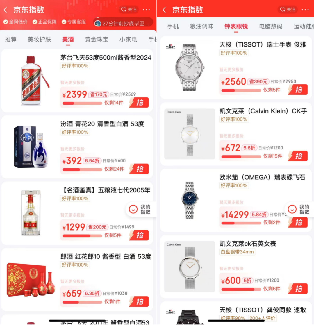 該板塊的商品涵蓋美妝護(hù)膚、美酒、黃金珠寶、小家電、手機(jī)、糧油調(diào)味、鐘表眼鏡、電腦數(shù)碼、運(yùn)動(dòng)鞋服品類(lèi)。