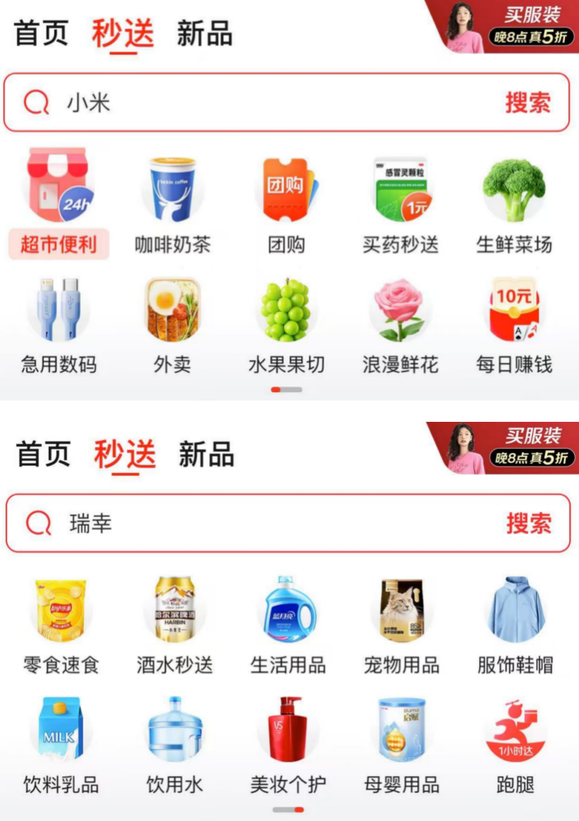 直至2024年3月,京東上線(xiàn)全新“秒送”頻道,打出“最快9分鐘送到手”標(biāo)語(yǔ),從“小時(shí)時(shí)代”升級(jí)到“秒時(shí)代”,由此填上了京東即時(shí)零售的一塊重要拼圖。