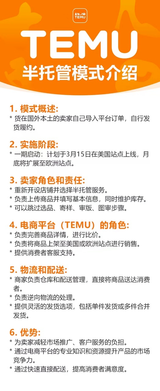 據(jù)悉,去年3月份,Temu就先在美國(guó)站點(diǎn)啟動(dòng)半托管模式,并在當(dāng)月月底擴(kuò)展至歐洲各大站點(diǎn)。至此,Temu改變了以往的全托管模式,將大部分重心轉(zhuǎn)移到半托管。