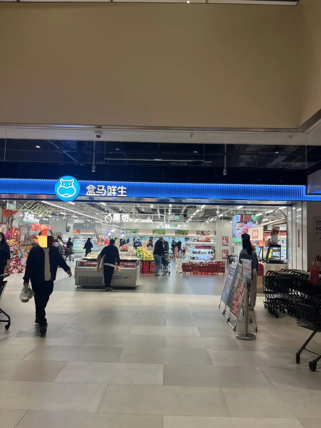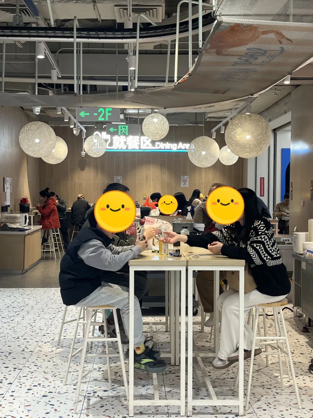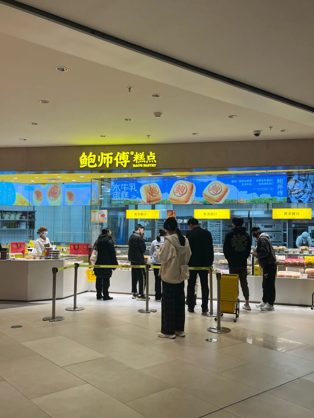 B2層坐了不少人的盒馬就餐區(qū),還在排隊的鮑師傅;