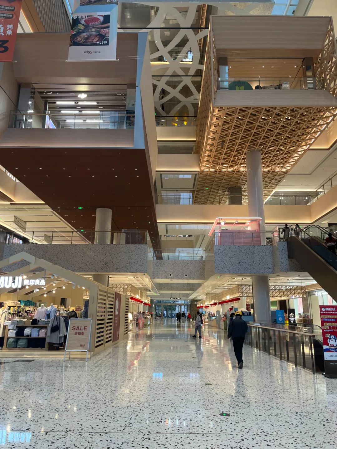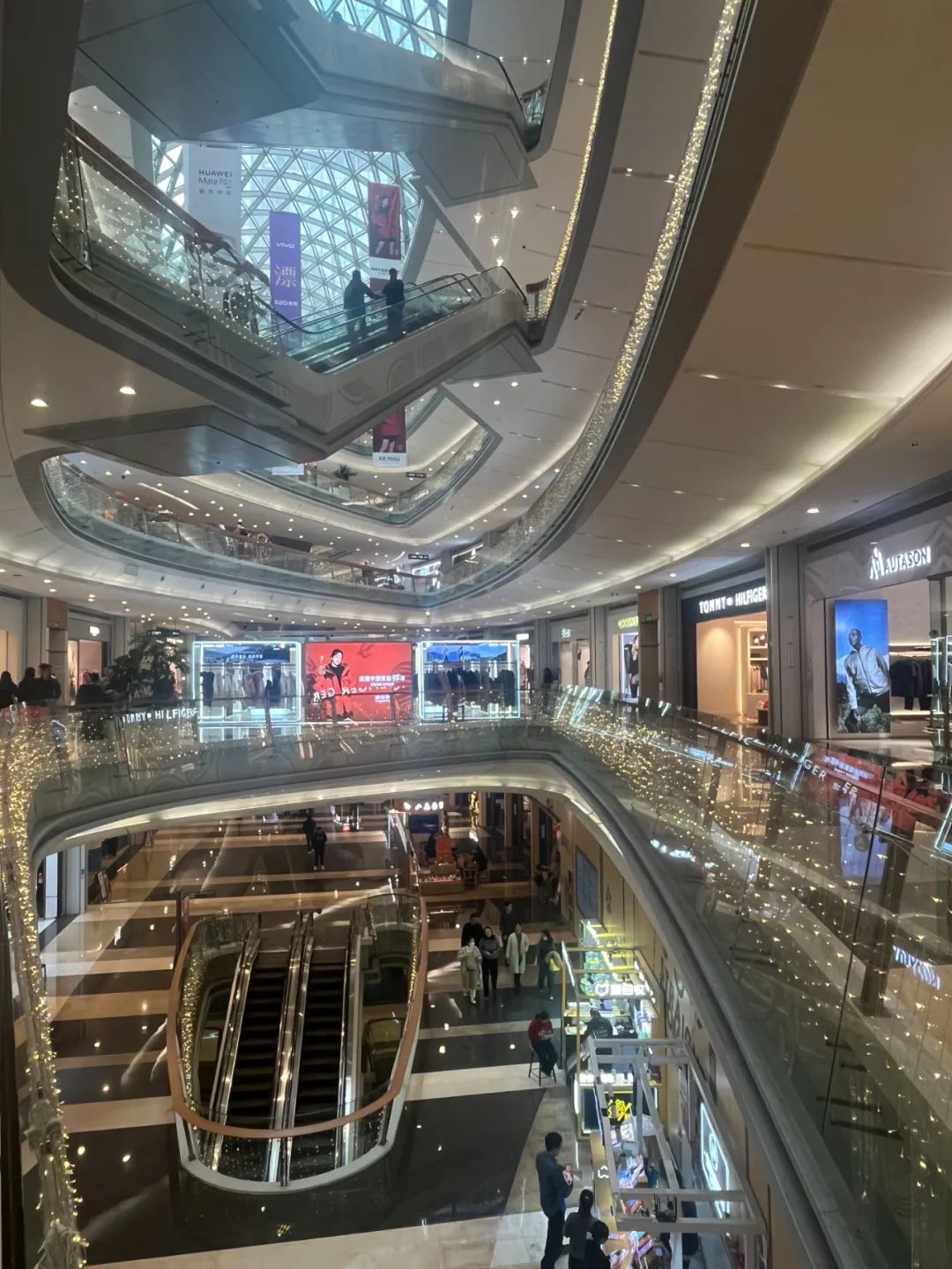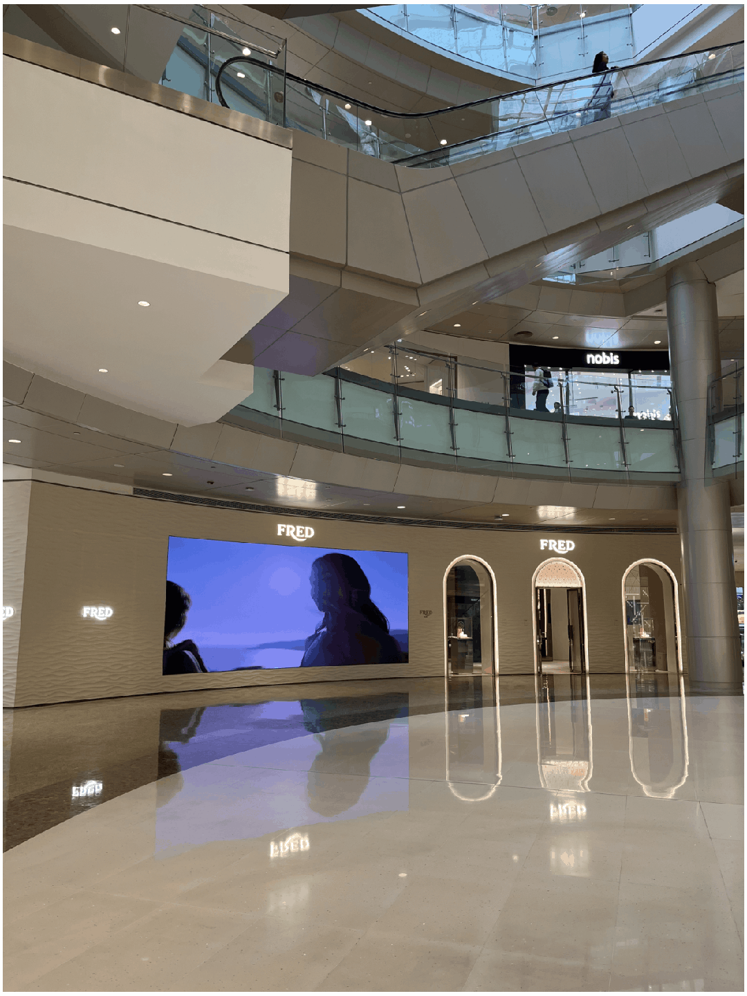 一期的L1層依然奢華無比,三層的Dior、兩層的LV、一層的Fred占據(jù)著中庭的核心位置。