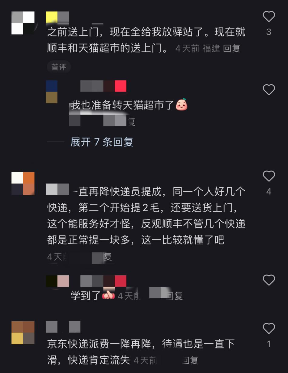 快遞員派費下調(diào)的連鎖反應(yīng)也呈現(xiàn)在了商家側(cè)。經(jīng)營電腦配件生意的張初透露,其店鋪去年所采用的京東物流運輸破損率明顯上升,他表示,“顯卡這類精密部件,現(xiàn)在每百單就有3-4單因為包裝擠壓導致退貨,后續(xù)會將店鋪所用物流換成順豐!
