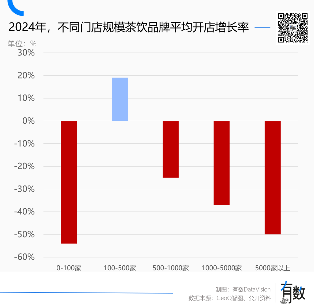 2024年,全國茶飲有近20萬家門店關(guān)閉[4],即使是門店已超5000家的行業(yè)尖子生,也逃不過門店增速腰斬的宿命。