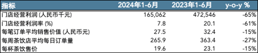 成本問(wèn)題對(duì)于直營(yíng)模式的奈雪來(lái)說(shuō)打擊更為致命,2024年中報(bào)顯示2023年1-6月份門店經(jīng)營(yíng)利潤(rùn)率為20.1%,到了2024年1-6月份門店利潤(rùn)率只有7%。