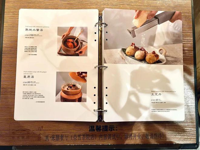 24年11月,奈雪終于第一次賣(mài)起了飯。彼時(shí),位于廣州的奈雪茶院(粵海天地店)除了提供零售原葉茶和現(xiàn)泡茶產(chǎn)品,還正在籌備"奈雪茶院X真·宋膳"餐廳,提供粵菜融合料理。真·宋膳設(shè)有獨(dú)立包間,更像是融合菜料理,所提供的菜品包括蟹釀橙、陳皮紅豆沙、爐焙鴿等產(chǎn)品。