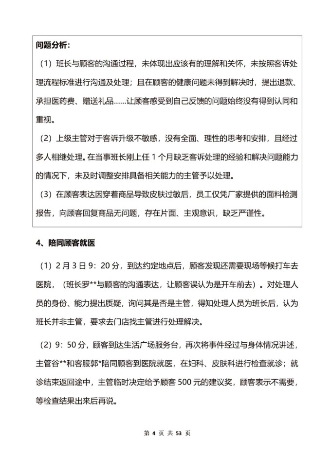 (2)依據(jù)《胖東來客訴處理標(biāo)準(zhǔn)》,給予顧客發(fā)放 500 元投訴獎,跟蹤顧客健康恢復(fù)狀況并承擔(dān)相關(guān)醫(yī)療費用。