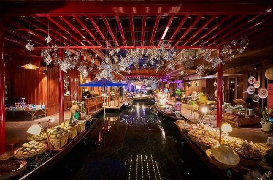 在場(chǎng)景打造上,暹羅樂(lè)城SOOKSIAM呈現(xiàn)出了泰國(guó)每個(gè)地區(qū)的民俗、風(fēng)俗習(xí)慣,比如北部可以欣賞皇家蘭納宮廷建筑,中部區(qū)打造了泰國(guó)第一個(gè)室內(nèi)水上市集,南部以中葡華人建筑、海灘、酒吧為主,在東北部則可以自由購(gòu)買(mǎi)特色產(chǎn)品和欣賞傳統(tǒng)藝術(shù)表演。