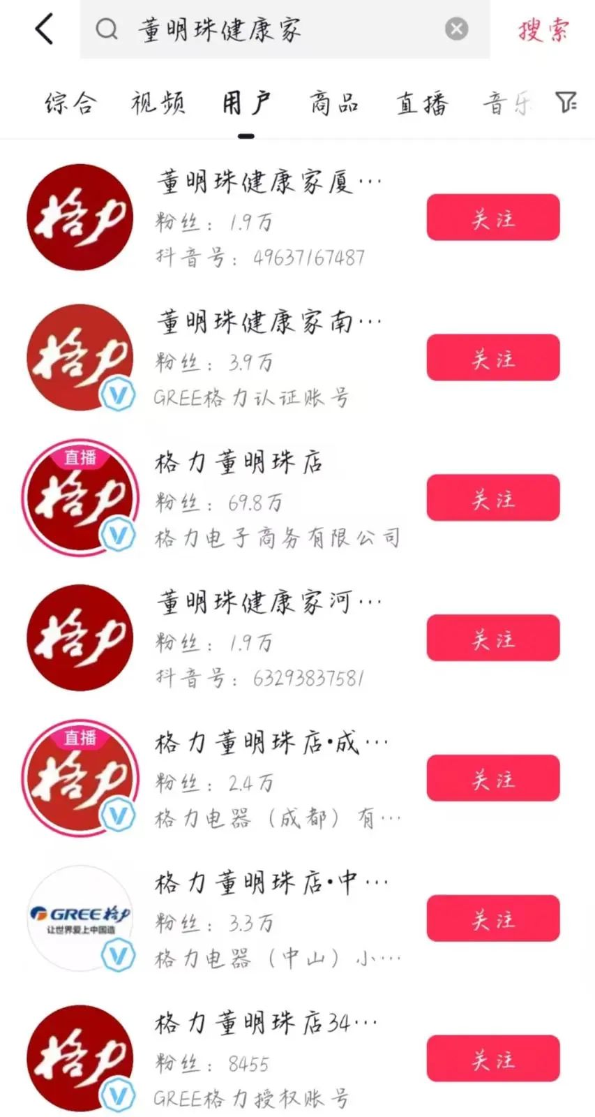 2月17日,雷達(dá)財(cái)經(jīng)搜索發(fā)現(xiàn),抖音平臺上,不少格力相關(guān)的直播間名稱中已有“董明珠健康家”、或者“董明珠”字眼。