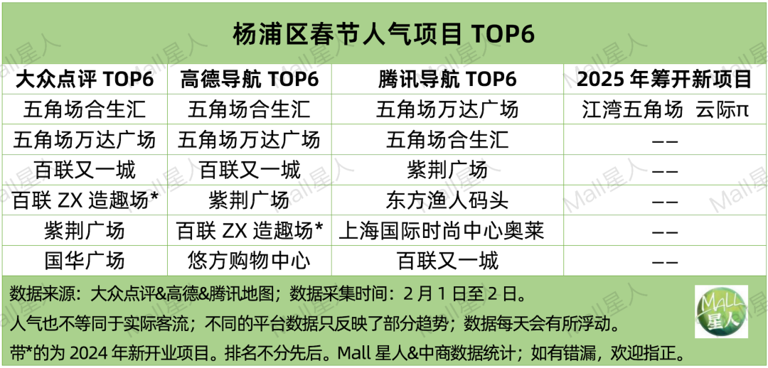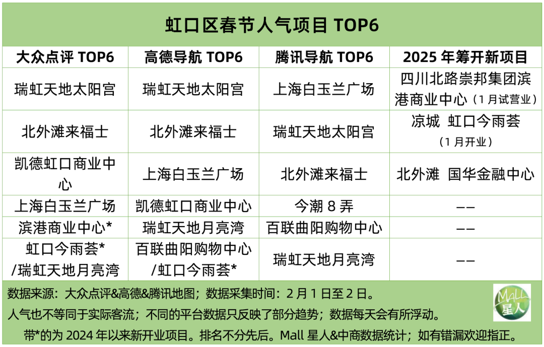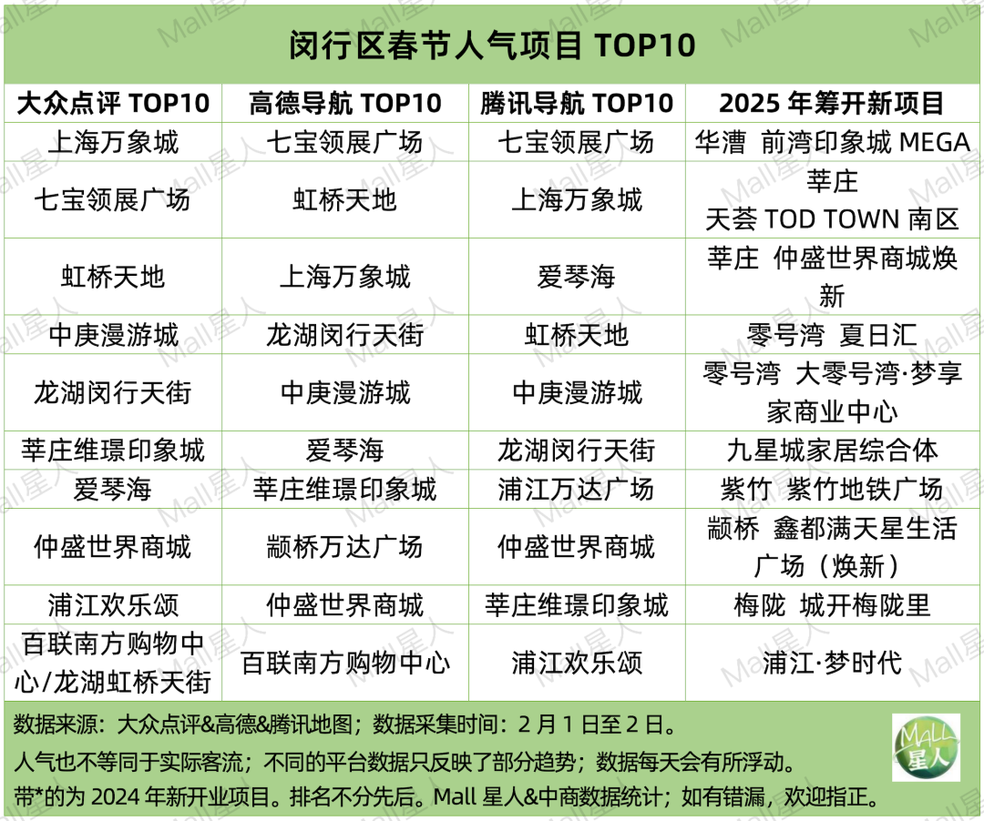 需要注意的是:各區(qū)商場(chǎng)數(shù)量和發(fā)展態(tài)勢(shì)不同,因此盤點(diǎn)的熱門商場(chǎng)數(shù)量也有所不同;這些數(shù)據(jù)僅反映春節(jié)期間的短期熱度,不代表平時(shí)或全年的表現(xiàn);上榜項(xiàng)目排名不分先后,畢竟每個(gè)商場(chǎng)都有自己的特色和亮點(diǎn)。
