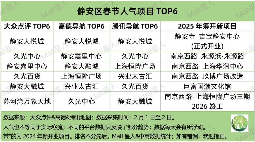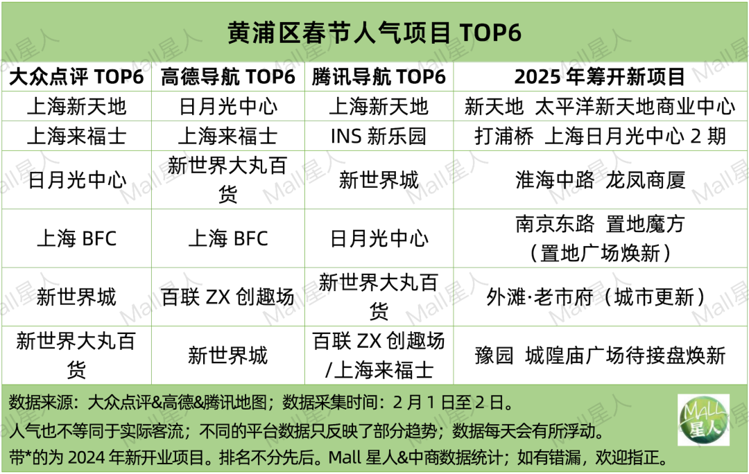 【TIPS】作為上海標(biāo)志性的商業(yè)與文化地標(biāo),豫園商城和新天地被部分APP歸類為熱門景區(qū)。春節(jié)期間,這兩大項(xiàng)目成為熱門打卡地,熱力值表現(xiàn)也較為亮眼。