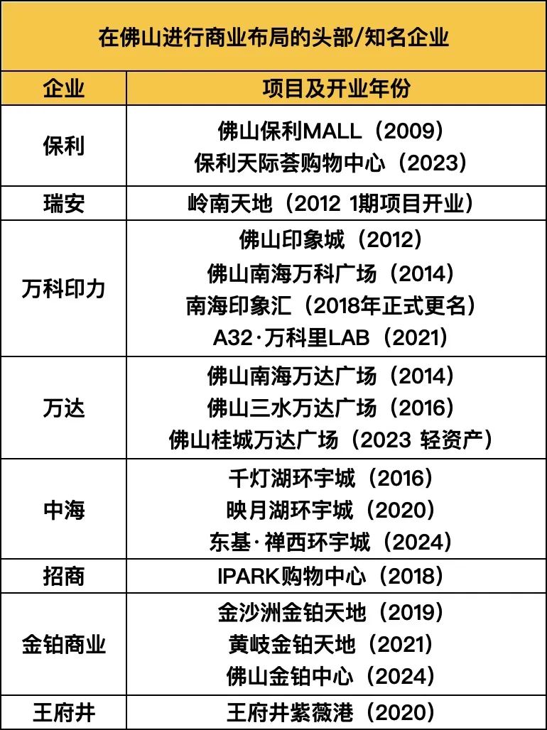 在佛山進(jìn)行商業(yè)布局的頭部/知名企業(yè)