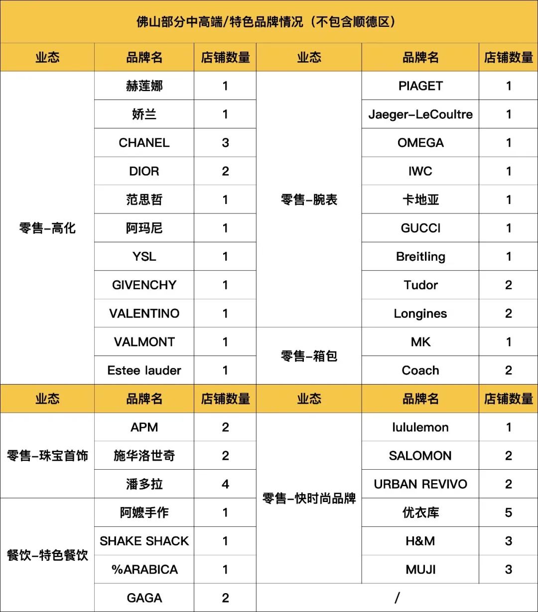從佛山購(gòu)物中心的中高端品牌布局?jǐn)?shù)量來(lái)看,也可以印證品牌方對(duì)于佛山市場(chǎng)的看法。