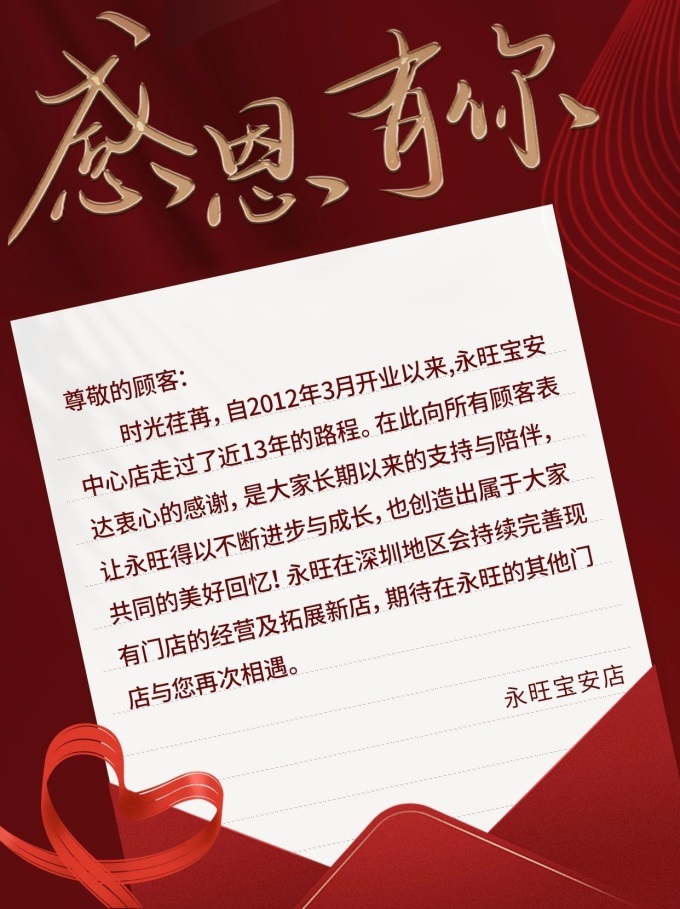 據(jù)悉,自2012年3月開業(yè)以來,永旺寶安中心店運(yùn)營已有13年,該店停止?fàn)I業(yè)后,永旺在深圳將只剩2家門店。