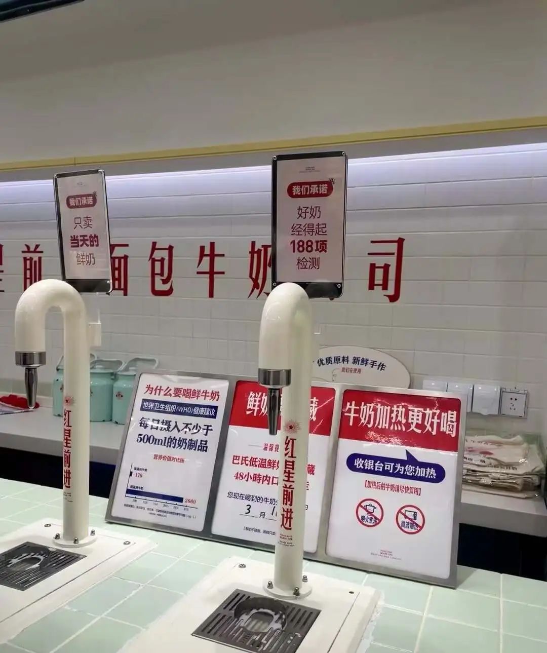 在鮮奶賽道,食品安全幾乎是“生死線”,F(xiàn)打鮮奶設(shè)備的管道和儲存罐清潔難度高,一旦清洗不到位,就容易滋生細菌,導(dǎo)致牛奶變質(zhì),甚至引發(fā)食安事件。以自助打奶模式為例,消費者頻繁操作設(shè)備,增加了污染風(fēng)險。