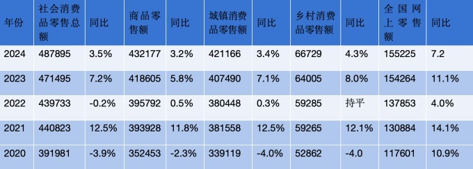 注:2020年-2024年全國社會零售業(yè)相關(guān)數(shù)據(jù)(單位:億元)