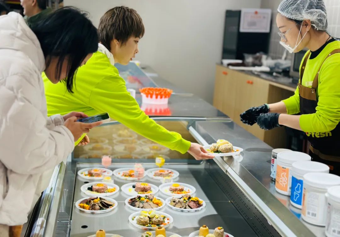 除了直播電商、30分鐘到家、B2C電商等渠道以及衍生的線下寵物社交探索,單從門店看,有價格力的寵物零食折扣店+聚人氣的堂食寵物鮮食檔口,各式冷鮮寵食和小蛋糕新商品……派特鮮生試圖給線下商業(yè)提供一種全新的寵物食品復合業(yè)態(tài)。
