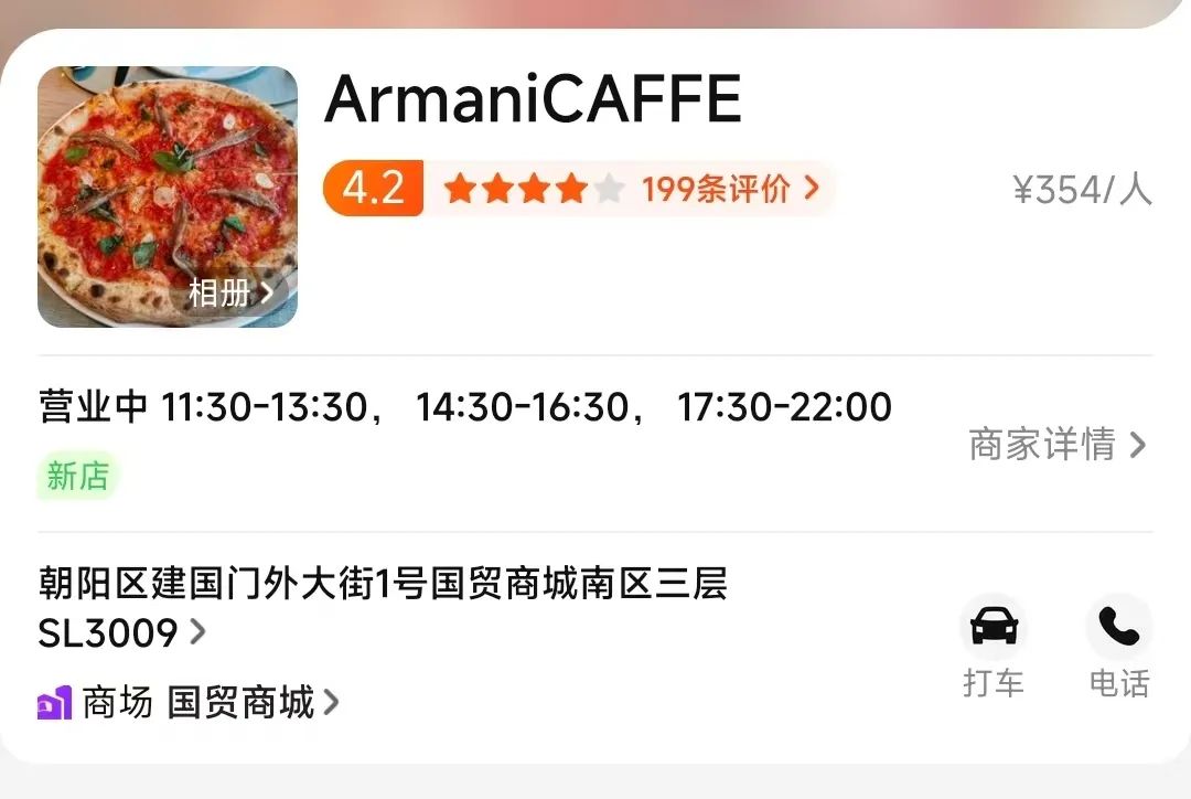在價格方面,ARMANI/CAFFè也并沒有想象中那么“奢侈”,甚至意外的讓人感覺還挺“親民”。美團(tuán)APP顯示,其人均消費(fèi)為354元。