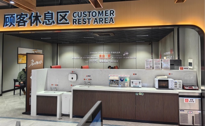 不僅如此,調改后的門店也都新設了顧客休息區(qū),飲水機、微波爐、共享充電寶、洗手臺、自助加冰站、醫(yī)藥箱、紙巾、存包柜、寵物寄存等便民設施一應俱全。