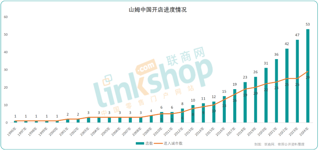 成熟且獨(dú)特的會員制模式與精準(zhǔn)的市場定位是山姆的核心優(yōu)勢,支持了山姆的快速發(fā)展。目前,山姆已在全國28個(gè)城市開出53家門店,并且還在持續(xù)拓展中。