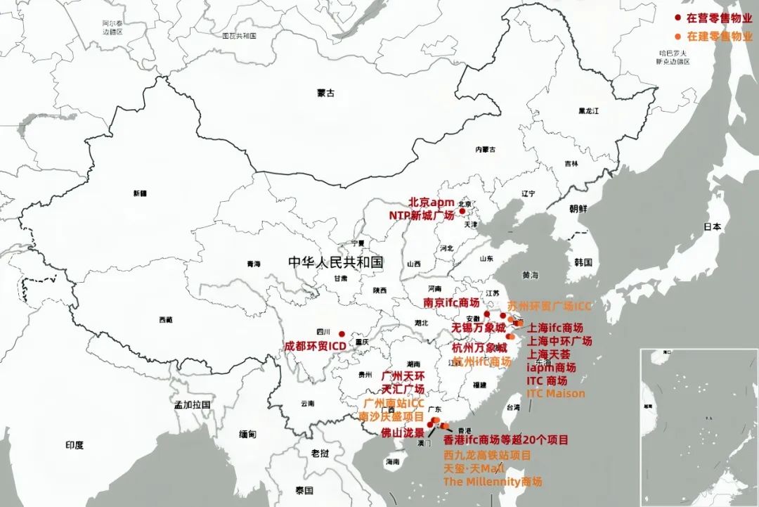 如在內(nèi)地,就包括旗艦商場上海ITC Maison、蘇州環(huán)貿(mào)廣場ICC、廣州南站ICC、上海TODTOWN Mall天薈廣場、杭州IFC、多處甲級寫字樓及高端酒店等。