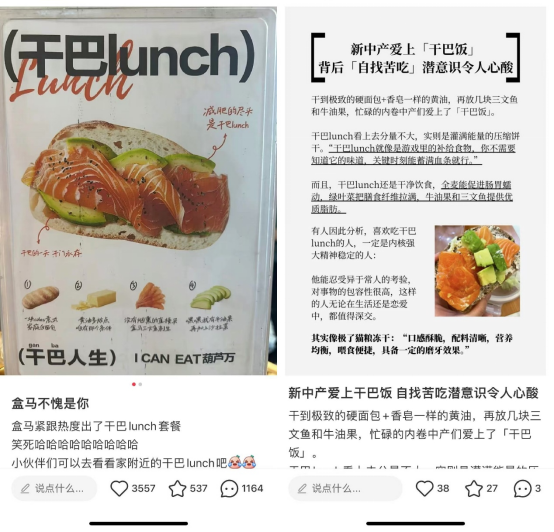 比如盒馬緊跟熱點(diǎn)推出的“干巴lunch套餐”,被網(wǎng)友形容為“中產(chǎn)三件套”;還有對標(biāo)山姆推出的瑞士卷、榴蓮蛋糕等,也快速收獲了市場認(rèn)可。