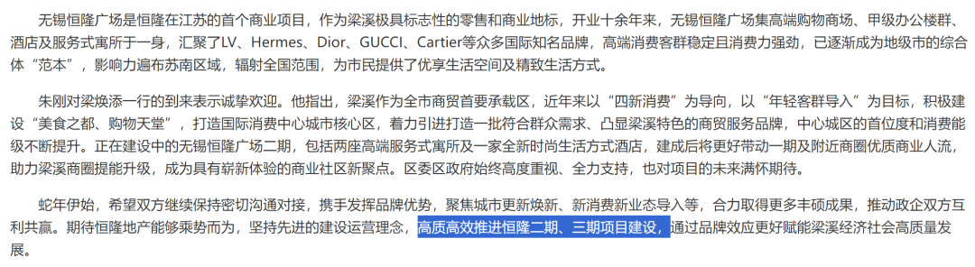 對(duì)于商場(chǎng)體量不夠大的硬傷,無錫恒隆廣場(chǎng)的二期項(xiàng)目已在建,三期也在推進(jìn)中。