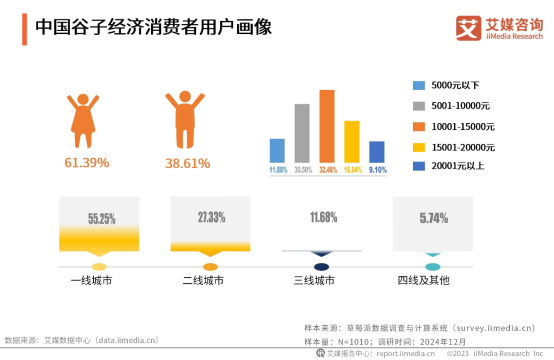 另一方面,以Z世代為主的“吃谷”群體,有著龐大的消費潛力。根據(jù)艾媒數(shù)據(jù),谷子經(jīng)濟的消費者主要為女性,超半數(shù)分布在一線城市,且收入普遍不低,有足夠的能力進行情緒消費。