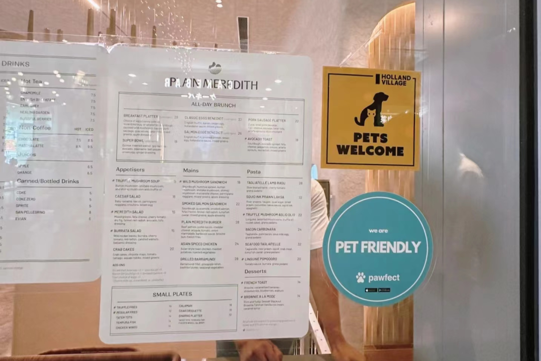 針對空間中的寵物服務(wù)重構(gòu),近年來也在國外市場中不斷升級。定位為社區(qū)商業(yè)的新加坡項目One Holland Village,除了打造寵物專用飲水臺、寵物電梯等設(shè)施外,還圍繞項目中近20家允許寵物進(jìn)入的餐廳及商店,進(jìn)行了細(xì)致化的標(biāo)識分類——