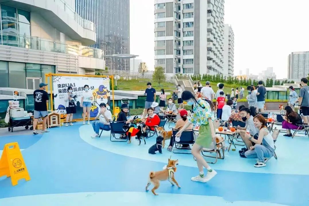 深圳來福士廣場也同樣利用項目中的天臺,打造了一處5,000平米的“天臺寵愛樂園”,不僅劃分出了寵物游樂區(qū)、舞臺活動區(qū)、藝術(shù)展示區(qū)、遮陽草坪區(qū),還配置有專屬通道、寵物飲水點、寵物沖洗點等便利裝置,為人寵間的互動提供了支撐。