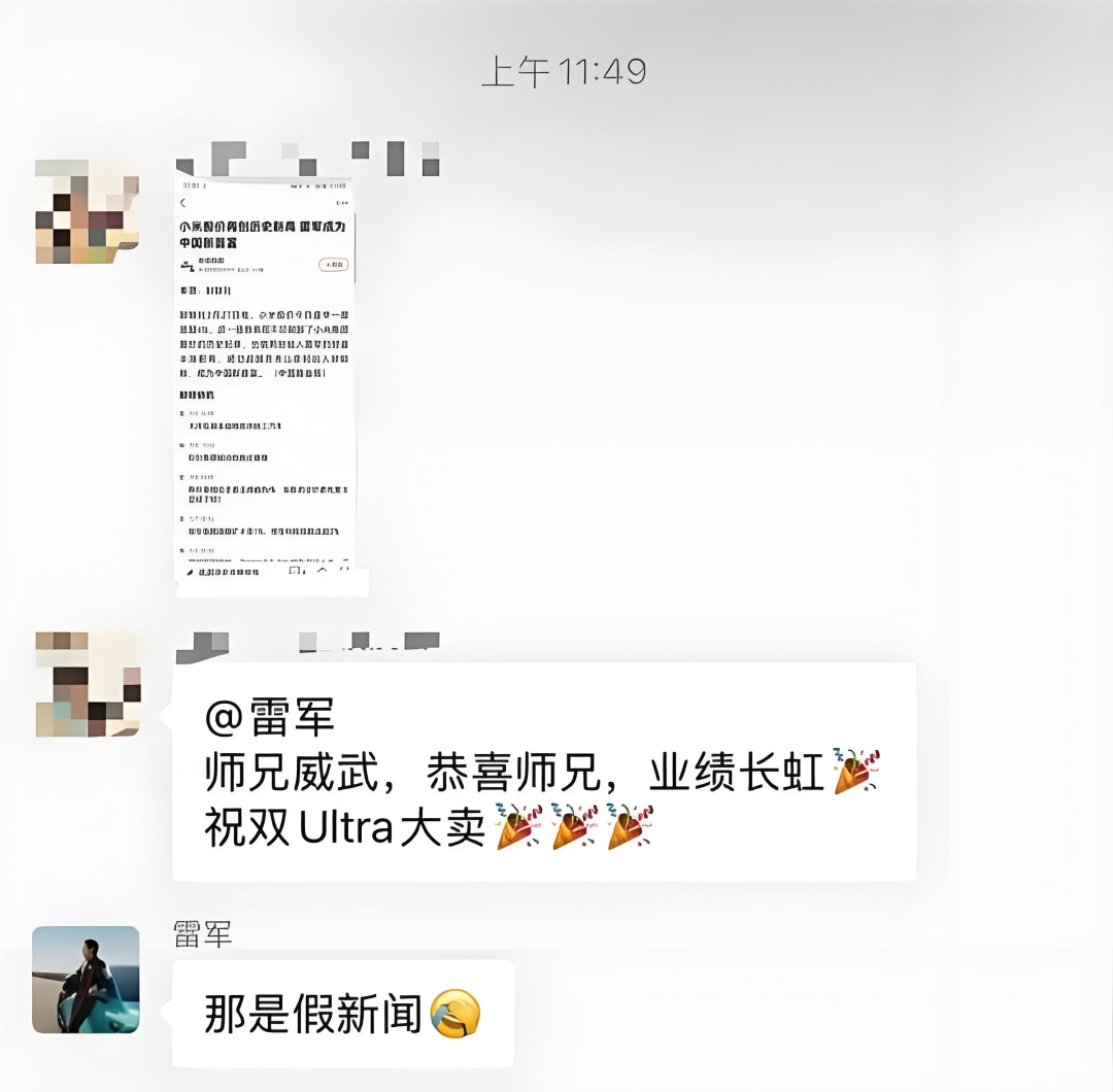 該消息引發(fā)熱議后不久,雷軍在武漢大學(xué)校友群中的發(fā)言截圖流出,其對此消息的回復(fù)言簡意賅:“那是假消息”,顯示出對首富頭銜退避三舍的態(tài)度。