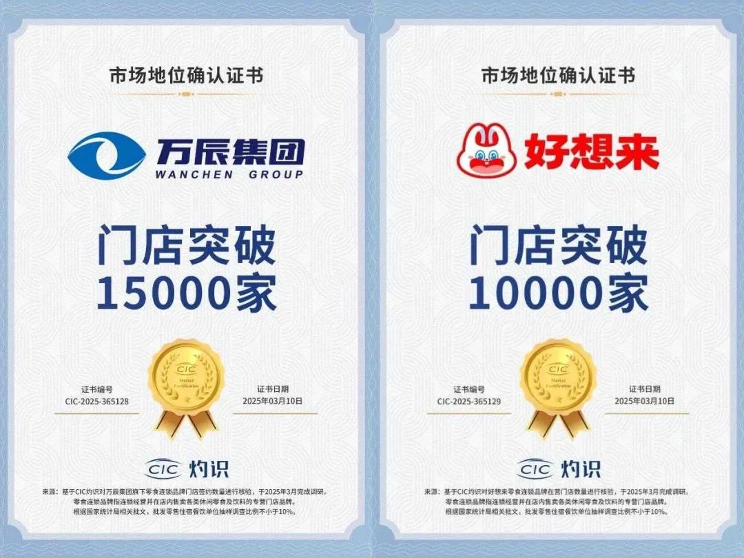 3月11日,灼識咨詢認證其簽約門店突破1.5萬家,其中好想來單一品牌在營門店超1萬家,成為國內(nèi)首個獲得“萬店認證”的零食連鎖品牌。