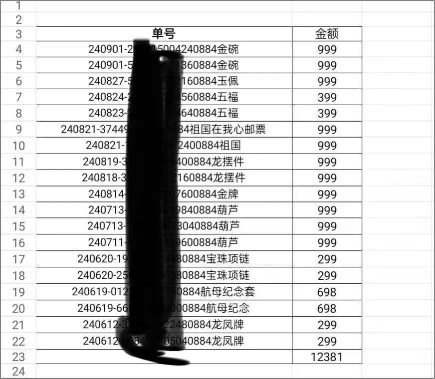 *小悅整理的部分訂單和金額(受訪人提供)