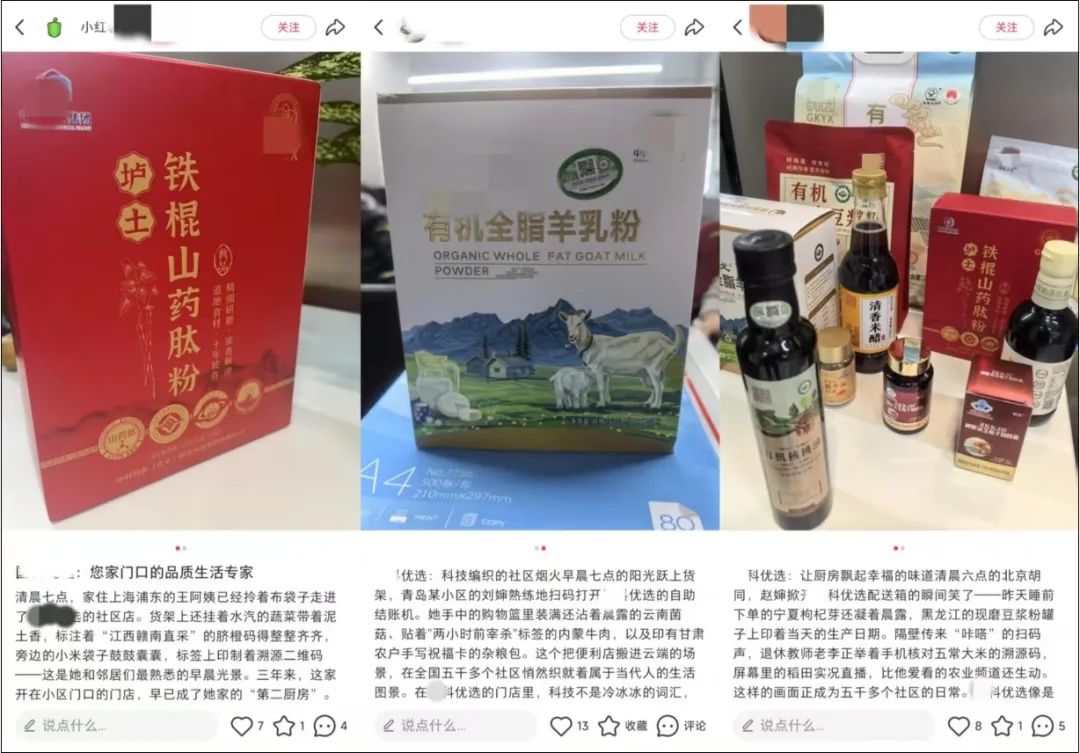 驚蟄研究所在“X科優(yōu)選”的線下門店內(nèi)看到,店內(nèi)擺放的商品數(shù)量不多,但種類混雜,既有醬油、醋等調(diào)味品,大米、羊奶粉等食品,還有鐵棍山藥肽粉、靈芝孢子粉等聽上去像是保健品的產(chǎn)品,給人一種既像生活超市,又像保健品專賣店的感覺。