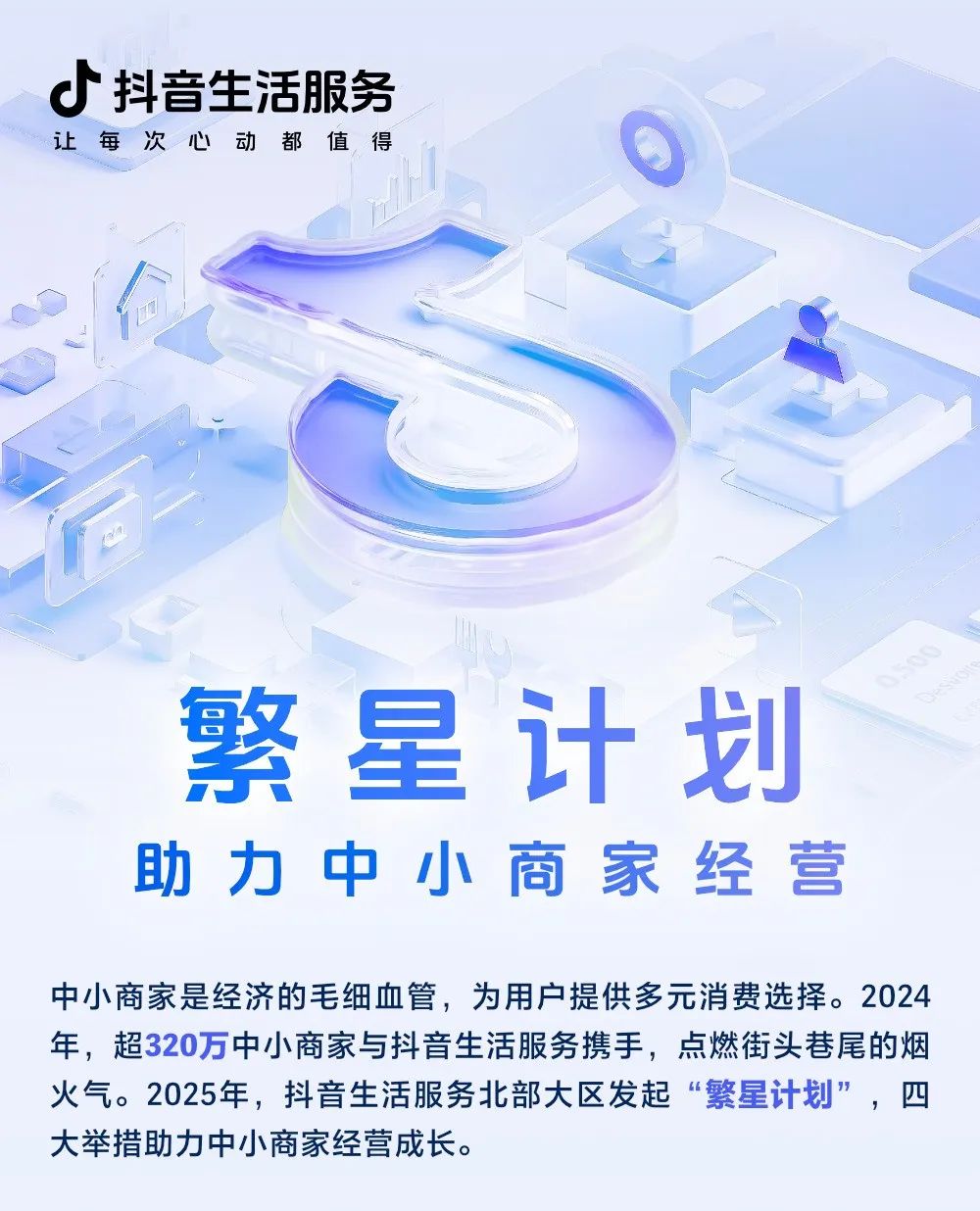 時(shí)間再往前推,本月月初,抖音生活服務(wù)北部大區(qū)推出了“繁星計(jì)劃”,同時(shí)配套實(shí)施四大核心舉措,以全面助力中小商家的經(jīng)營(yíng)成長(zhǎng)。