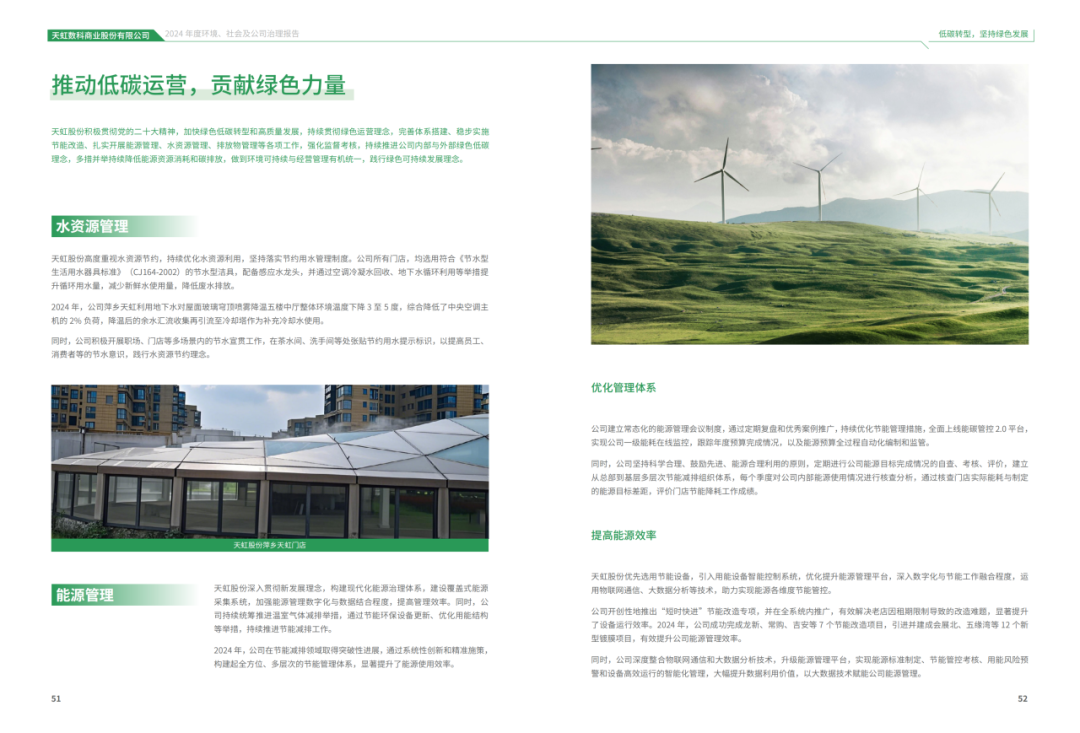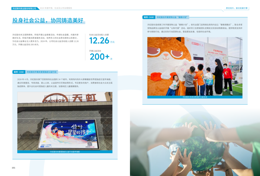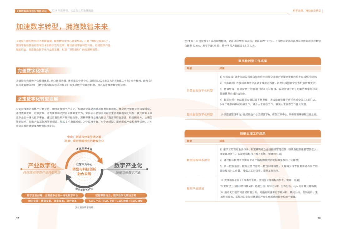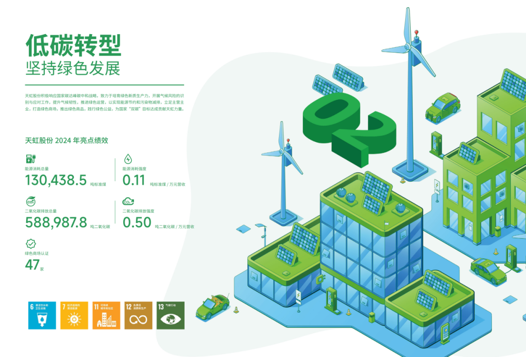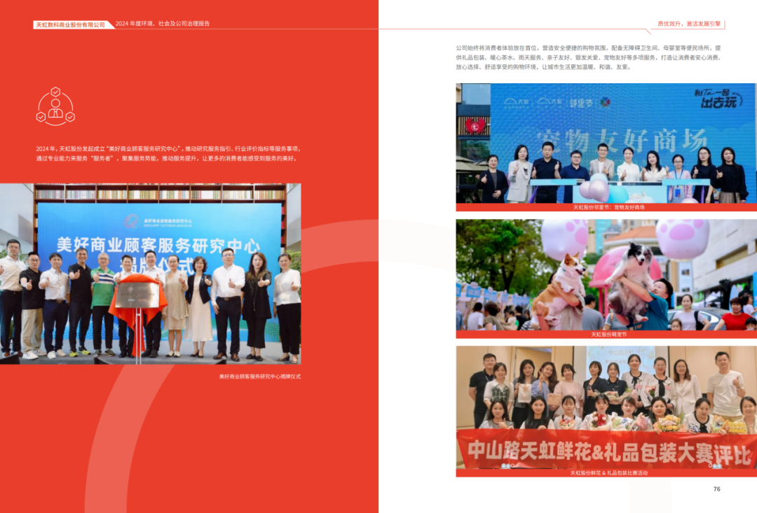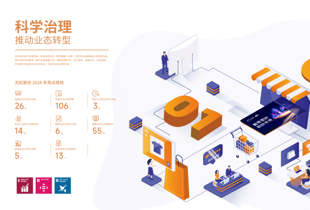 在充滿變革與挑戰(zhàn)的2024年,天虹股份繼續(xù)推進(jìn)環(huán)境、社會(huì)和公司治理的深度融合,并取得了顯著進(jìn)展。