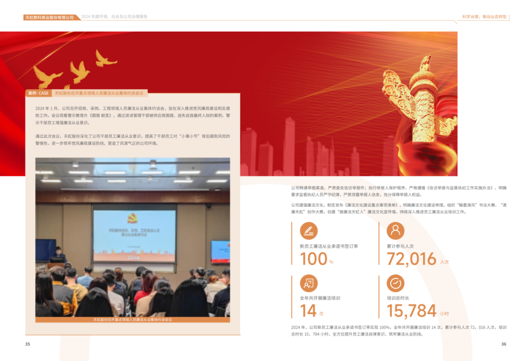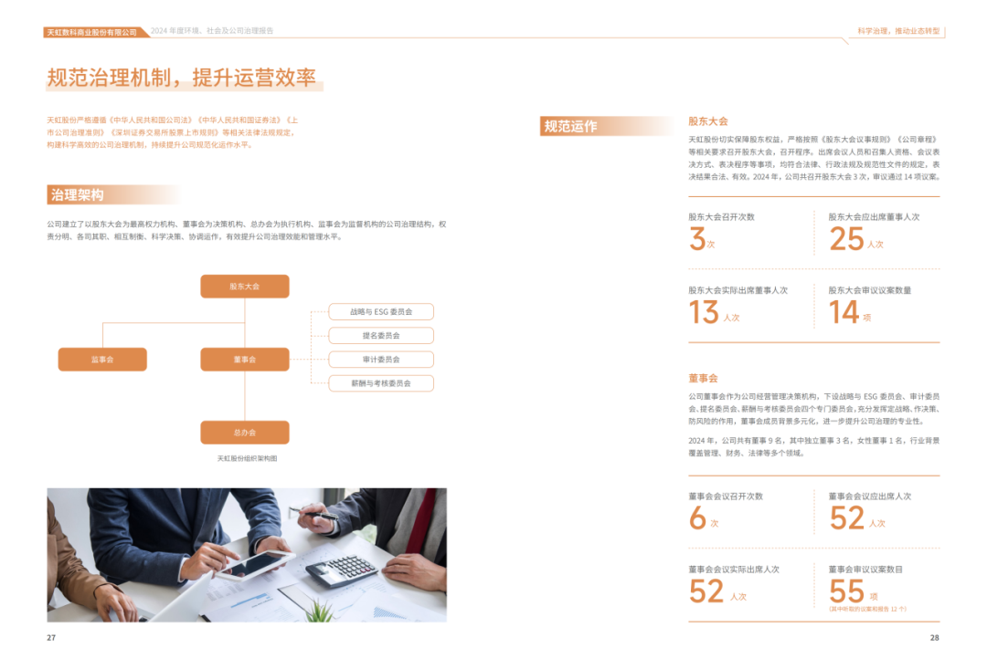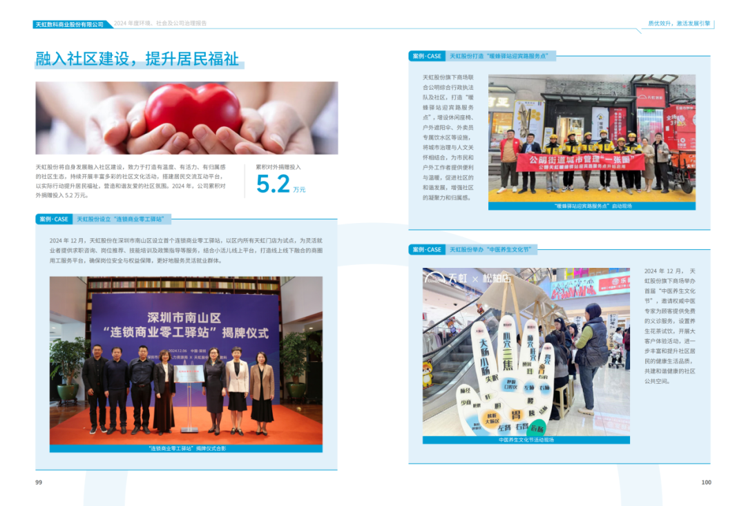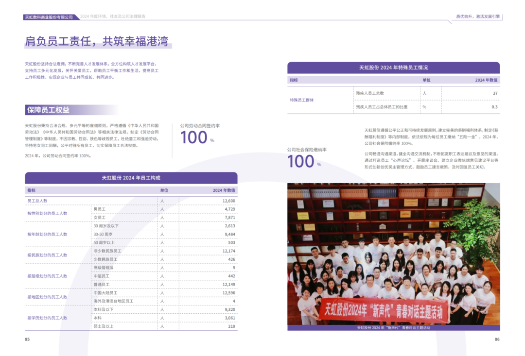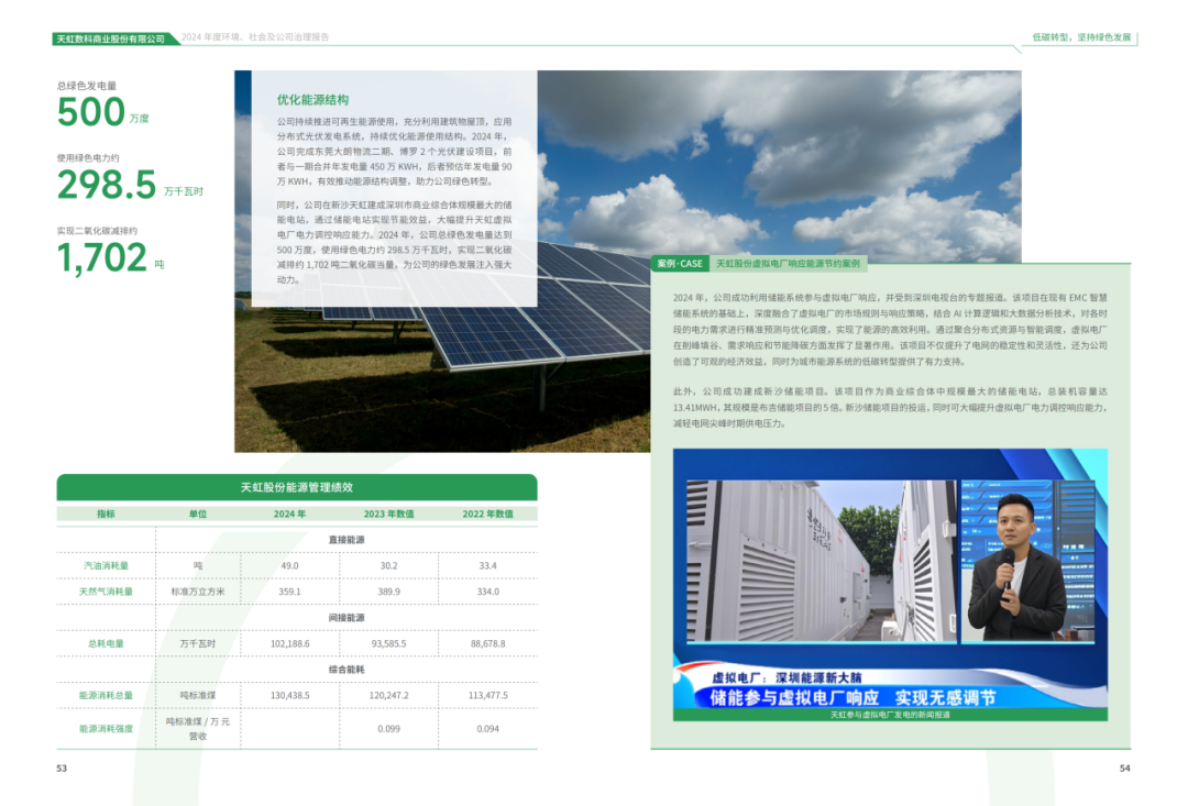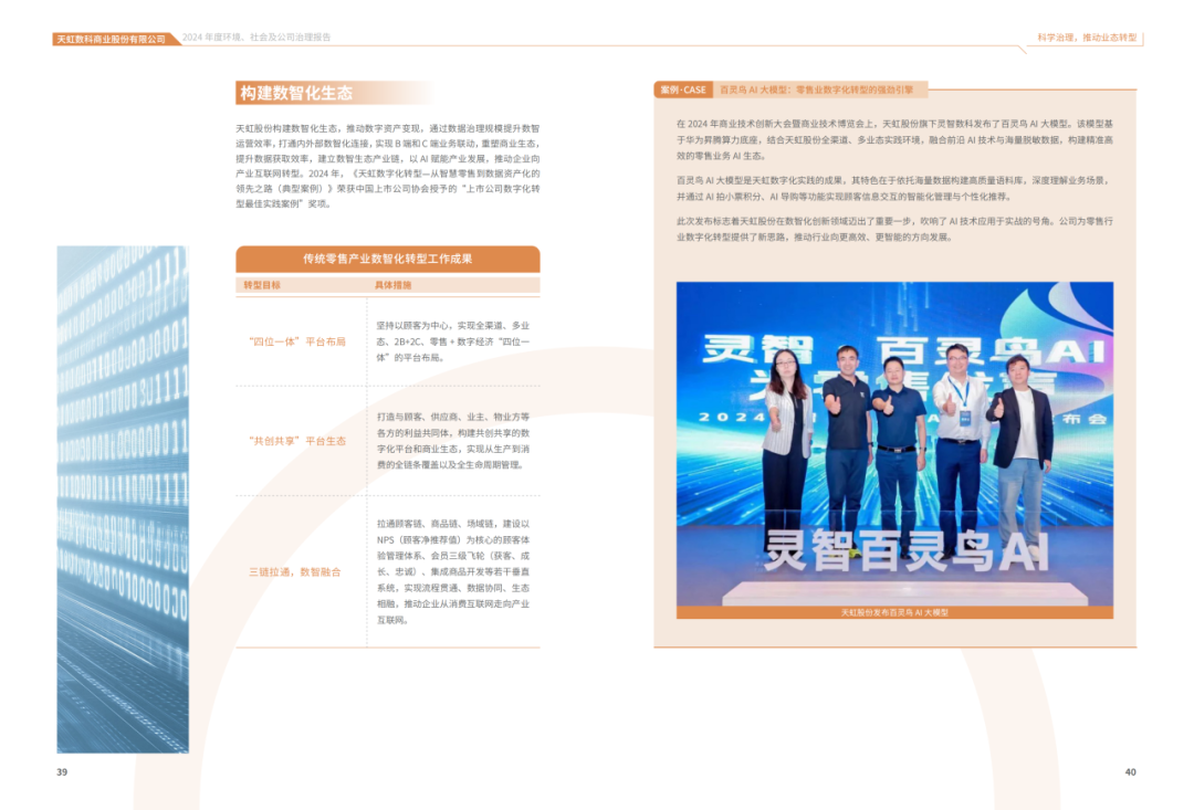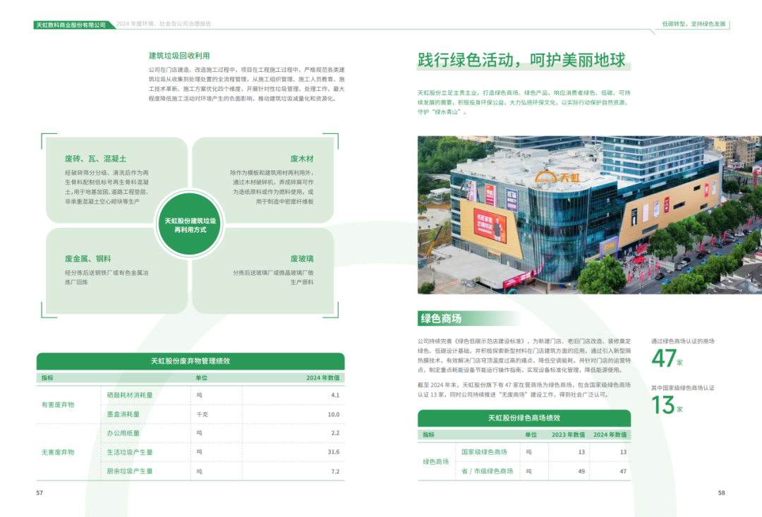 在充滿變革與挑戰(zhàn)的2024年,天虹股份繼續(xù)推進(jìn)環(huán)境、社會(huì)和公司治理的深度融合,并取得了顯著進(jìn)展。