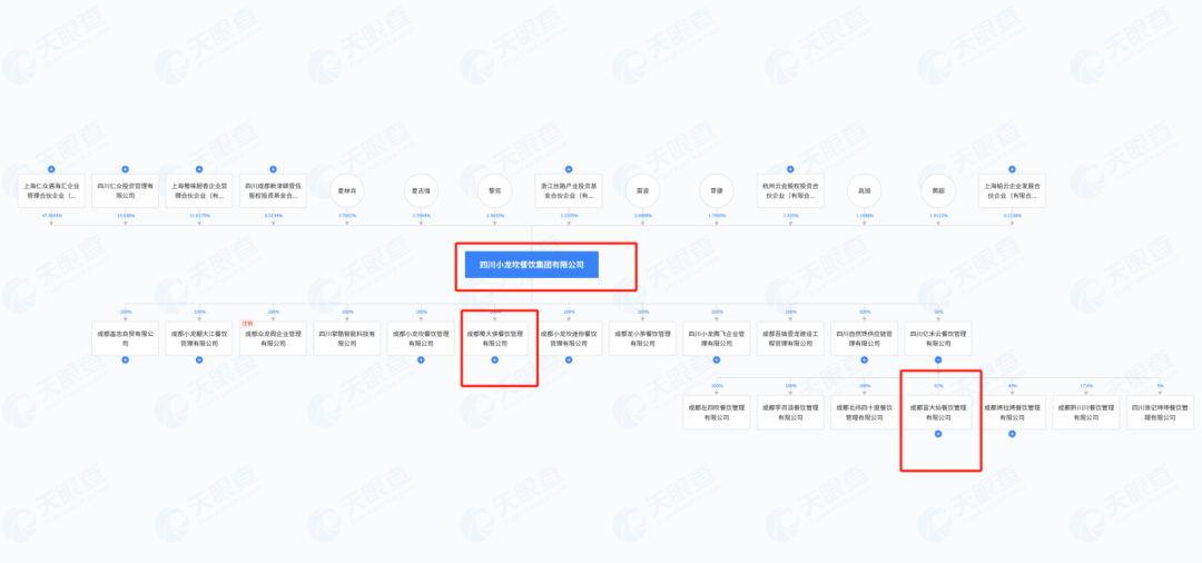 天眼查股權(quán)穿透顯示,除出現(xiàn)小龍坎,吳東還布局了知名餐飲品牌“蜀大俠”、“冒大仙”等。此外,2018年,吳東還推出中式茶飲品牌“龍小茶”,2020年,針對“單身經(jīng)濟(jì)”盛行,推出“一人食”MiniHoogo火鍋菜。