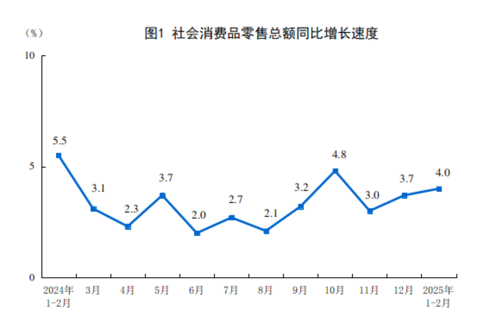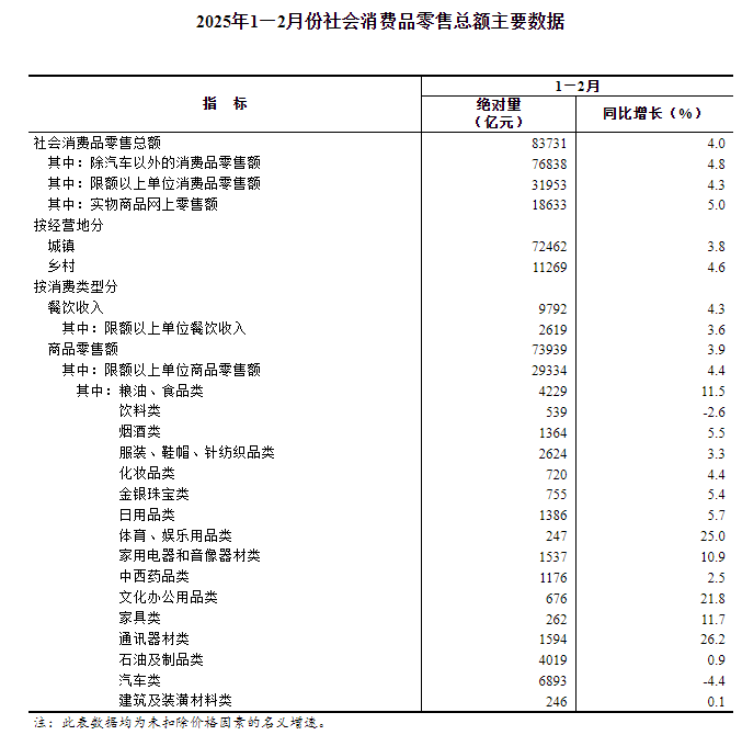2025年1-2月社會消費品零售總額增長4.0%