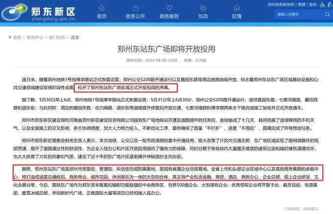 2023年6月,隨著鄭州地鐵1號(hào)線博學(xué)路站正式恢復(fù)運(yùn)營(yíng)、鄭州公交S208路開通運(yùn)行以及嘉園東路等周邊道路陸續(xù)開放,鄭州東站東廣場(chǎng)區(qū)域正式開放投用。