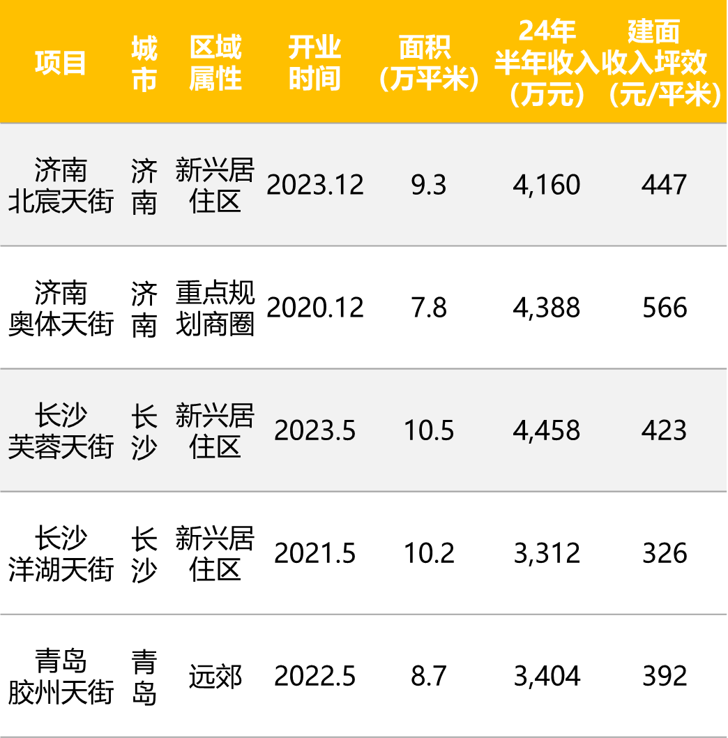 另外我們從龍湖地產(chǎn)2024年半年報(bào)中所披露的龍湖天街收入情況看,龍湖位于濟(jì)南的兩項(xiàng)目收入坪效(建面口徑)與長(zhǎng)沙和青島基本處于同等水平且略高的狀態(tài)(長(zhǎng)沙人均GDP與濟(jì)南接近)。