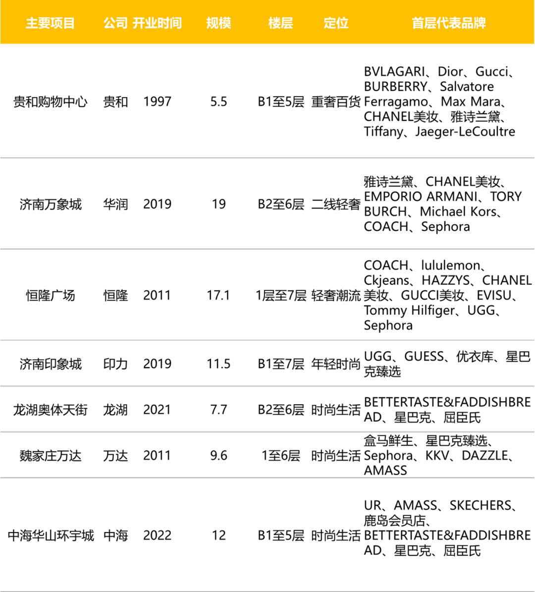 各家國(guó)內(nèi)頭部商管公司均在濟(jì)南落子其主要產(chǎn)品線代表項(xiàng)目。