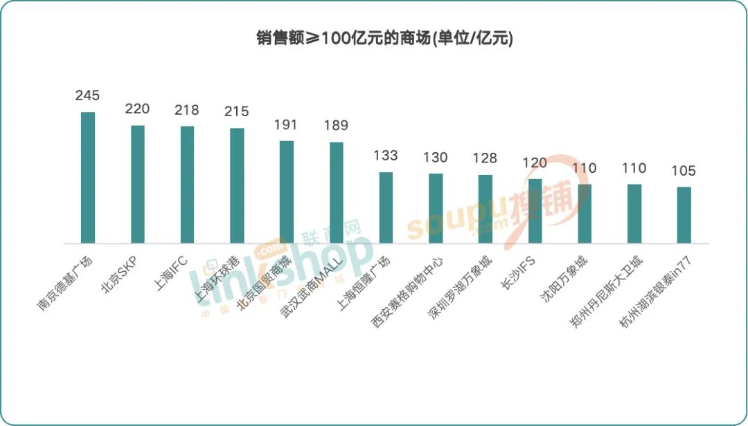 整體銷售額顯示,309家商場總銷售額達(dá)8092.7億元。