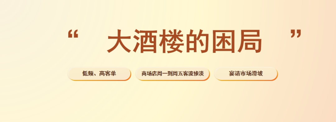 大酒樓面臨宴請市場的慘淡,其他方面也與正餐的情況類似,所以我的建議是一定要少開店,不要再擴張了,因為這個業(yè)態(tài)整體的大環(huán)境已經(jīng)不存在了。