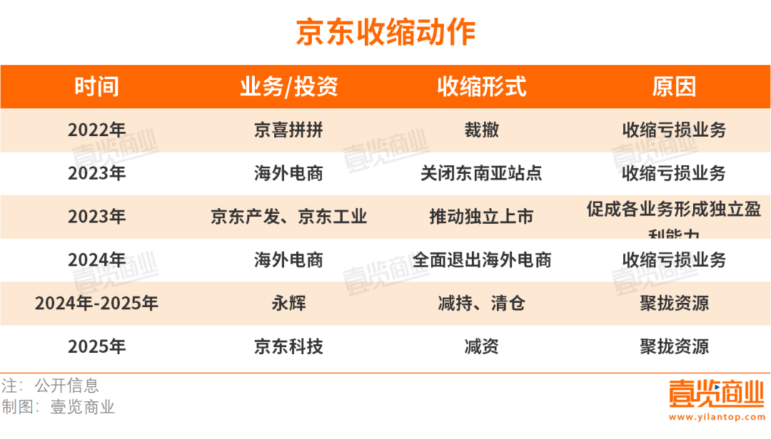 壹覽商業(yè)發(fā)現(xiàn):近三年來,京東的收縮動作包括但不限:裁撤京喜拼拼、關(guān)停海外電商、推動京東產(chǎn)發(fā)、京東工業(yè)獨(dú)立上市、清倉永輝、減資京東科技。