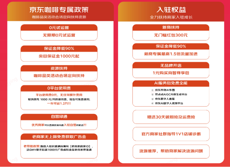 同時,京東超市推出精品咖啡品牌POP新商家十一大扶持舉措,通過降低入駐門檻、運營門檻,以及多項專屬扶持,并支持多類目開店、優(yōu)先入駐自營機會等舉措,加速精品咖啡豆新商家成長。