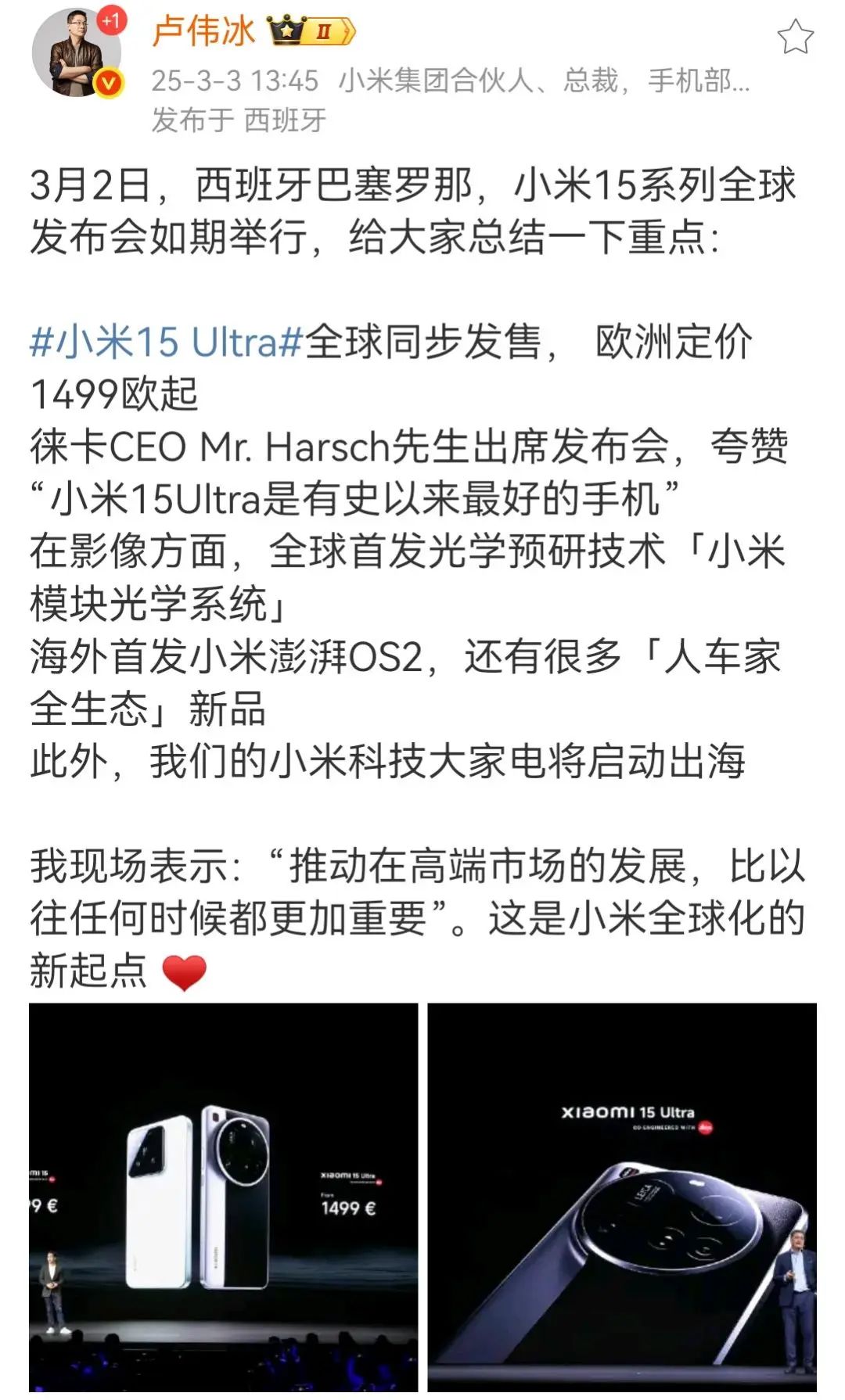 盧偉冰曾概括小米的出海模式,第一階段是小米產(chǎn)品和小米品牌出海,第二階段叫小米模式出海,并且表示現(xiàn)在小米今天已經(jīng)完成了產(chǎn)品出海和品牌出海。