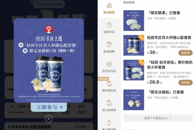 3月21日,霸王茶姬首次在全國(guó)省會(huì)城市推出輕因系列新品,包括輕因·伯牙絕弦和輕因·伯牙鮮沏,同時(shí)在全國(guó)范圍內(nèi)上線“輕因?qū)^(qū)”,將青青糯山、白霧紅塵、琥珀光、七里香納入輕因?qū)^(qū)。為了滿(mǎn)足不同咖啡因受耐度的消費(fèi)者需求,霸王茶姬今年將陸續(xù)上線輕因系列產(chǎn)品。