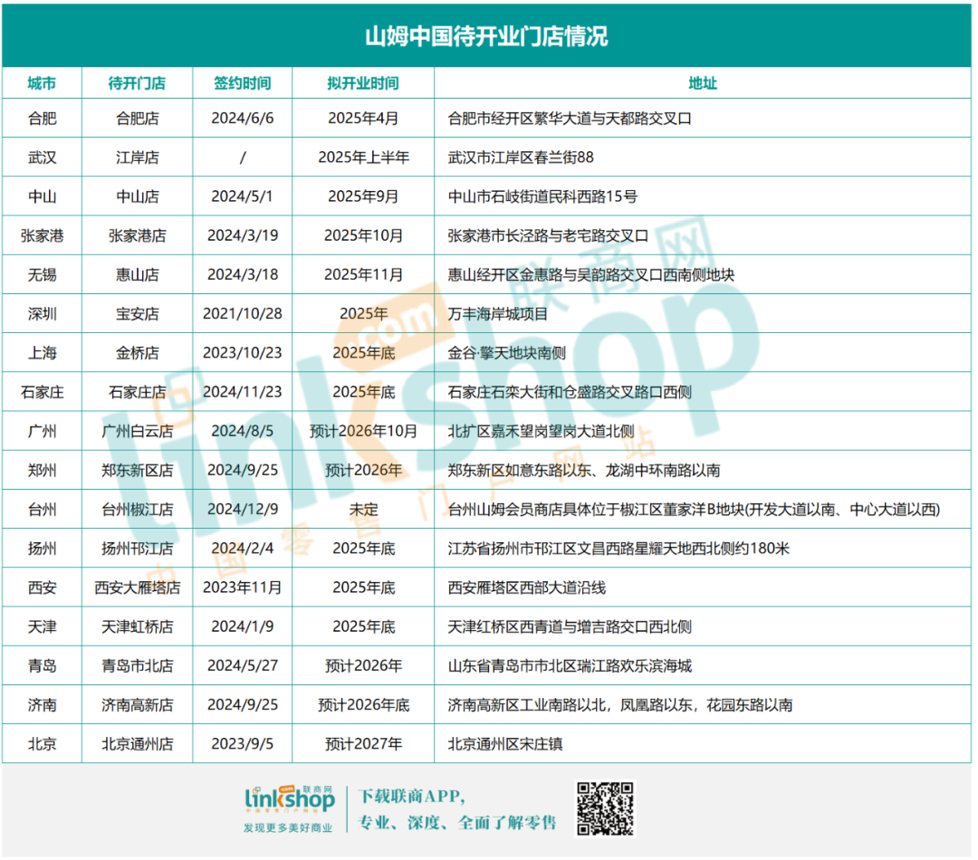 據(jù)公開信息整理,目前山姆至少有17家已簽約待開門店。