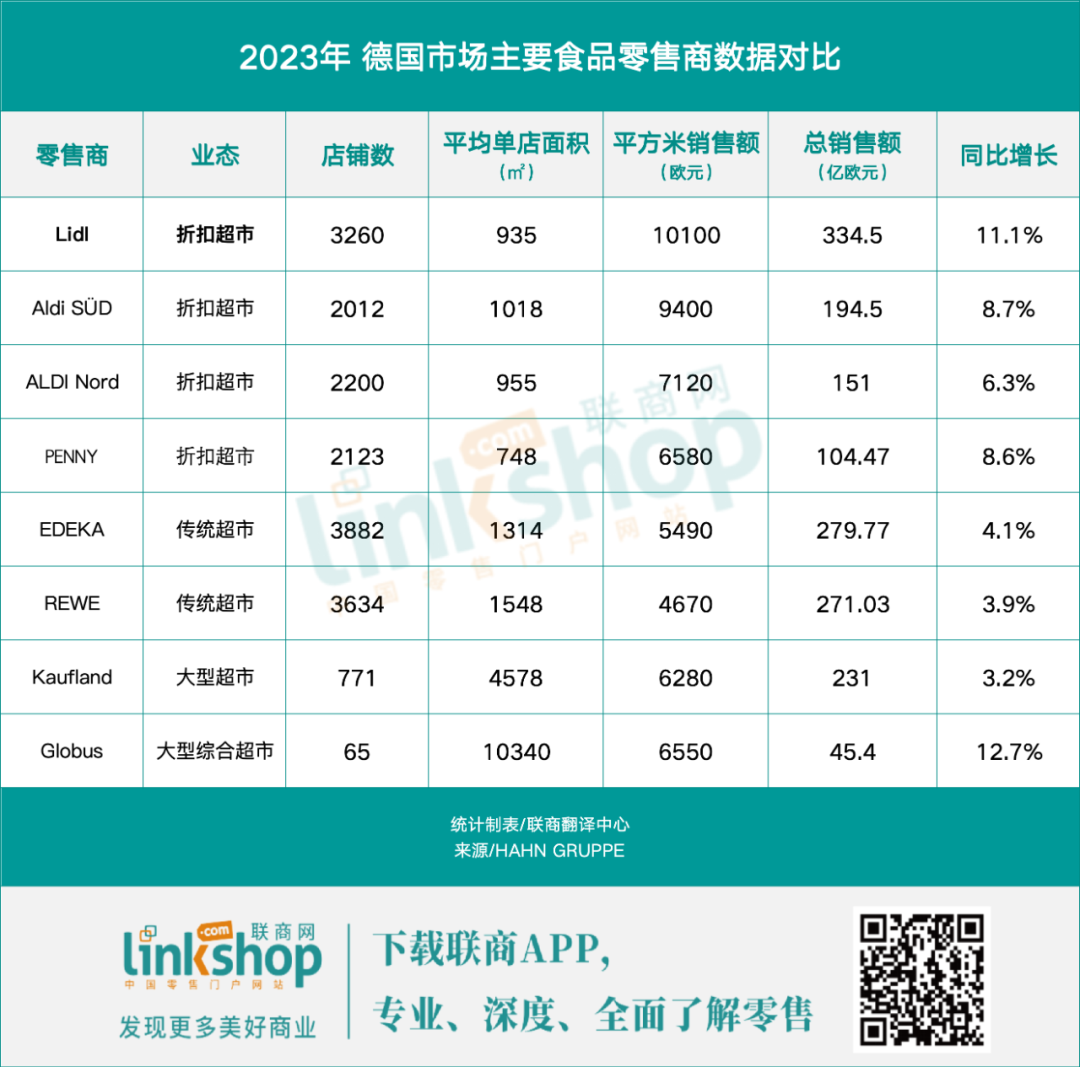 2023年數(shù)據(jù)顯示,Lidl在德國擁有3600家門店,平均單店面積935平方米,每平方米銷售額高達10100歐元,遠高于當?shù)仄渌闶凵。值得一提的是,前幾年Lidl的單店坪效在德國市場曾落后于ALDI,但近年來隨著數(shù)字化支持和更個性化的單品開發(fā),Lidl已在這一關鍵指標上實現(xiàn)反超。這種后來居上的態(tài)勢,證明了Lidl商業(yè)模式的持續(xù)創(chuàng)新活力和長期競爭力。