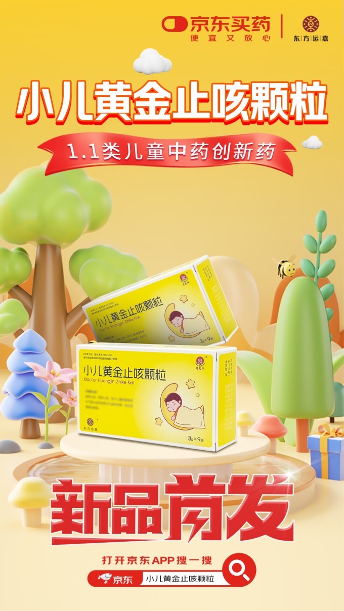 3月25日,中藥創(chuàng)新藥小兒黃金止咳顆粒在京東健康線(xiàn)上首發(fā)。